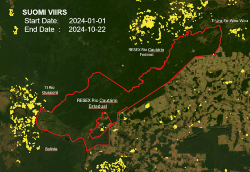 The webinar showcased a successful forest protection strategy based on Permian Brasil’s experience with the communities of the Rio Cautário State Extractive Reserve (RESEX). The case emphasized the role of technology and collaboration with local actors, as well as the challenges of defending communities and forests against the growing number of fires in the region. The year 2024 was marked as a period of extreme heat, during which fires affected an area of the Amazon equivalent to the size of California.